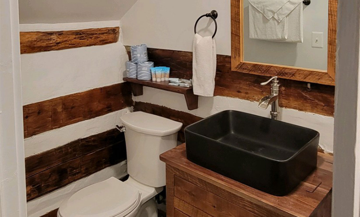 Lower Cabin is just below the Main Lodge and sits 50 feet from Rose River,